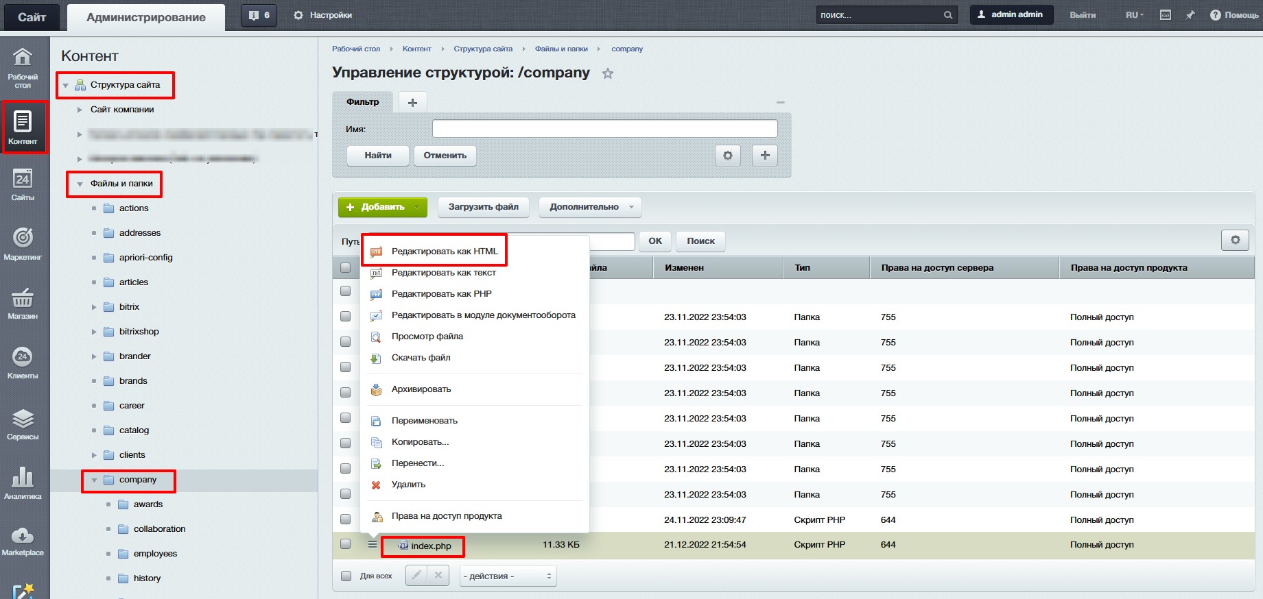 В указанной папке найдите файл index.php и откройте его для редактирования.