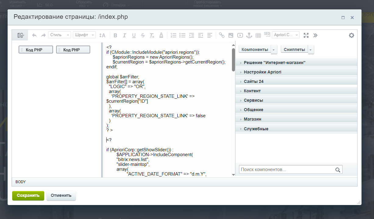 - Поддержка мультисайтовости — вы можете привязать регионы к сайтам, если у вас больше одного сайта.