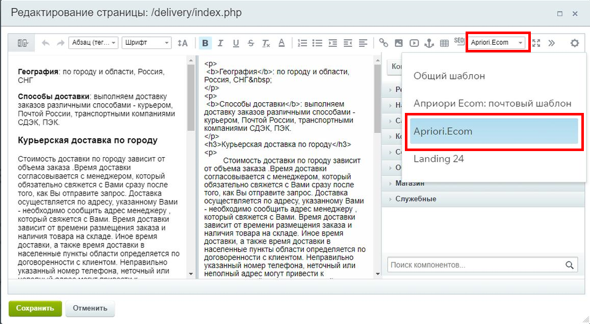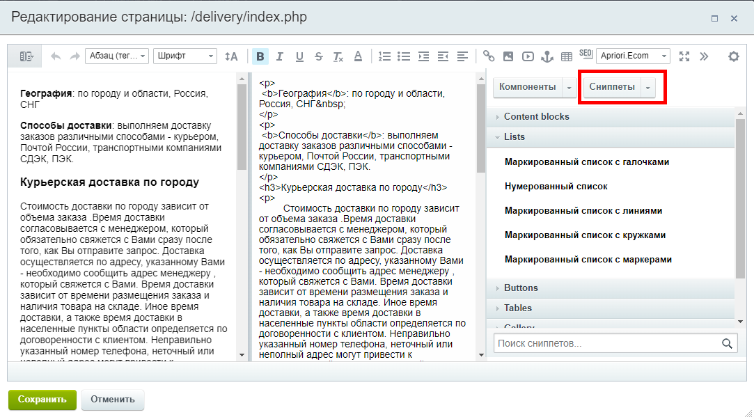 Документация Apriori.EcomMarket: Интернет-магазин - Сниппеты