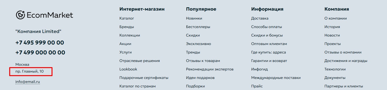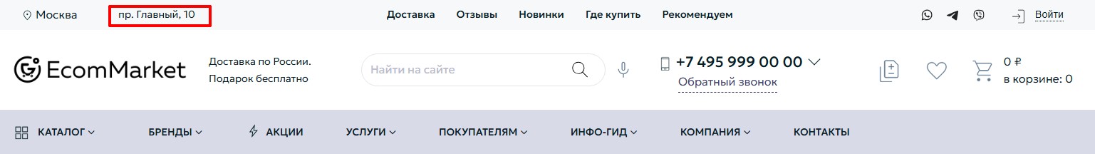 Документация Apriori.EcomMarket: Интернет-магазин - Адрес