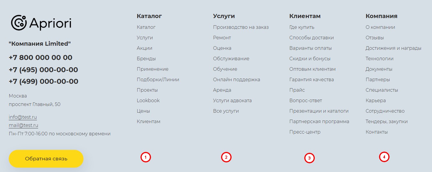 Документация Apriori.EcomMarket: Интернет-магазин - Меню футера