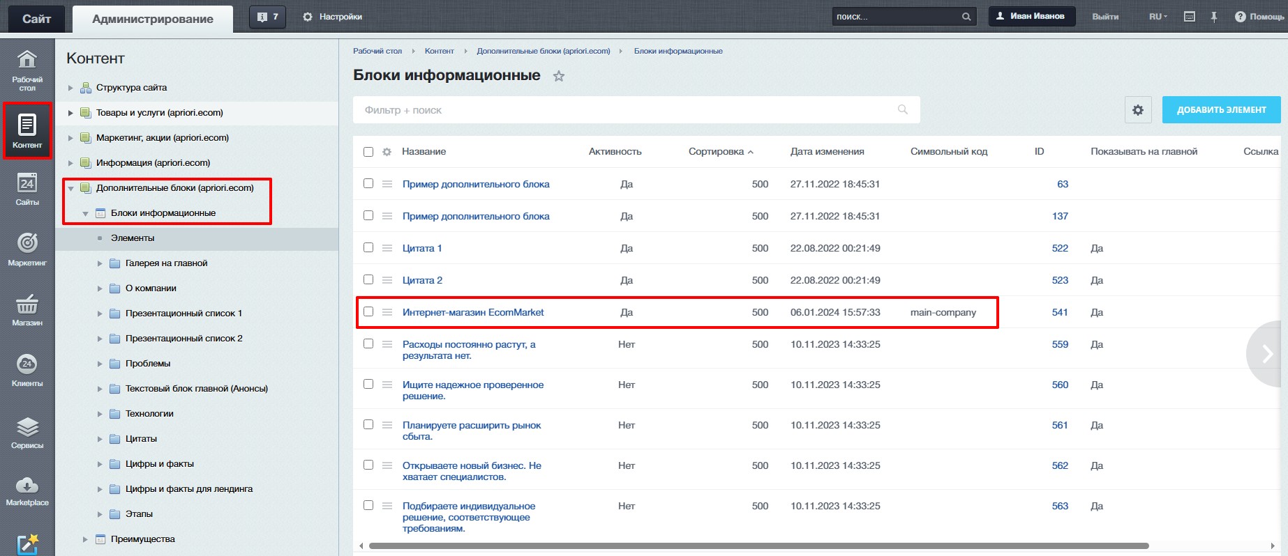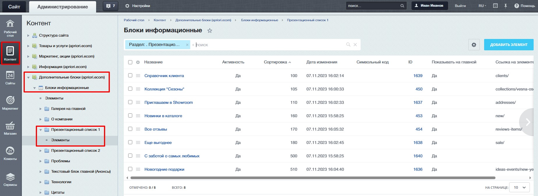 - деактивировать лишние элементы или разделы в инфоблоках;