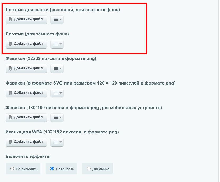 - Отступы секции — стандартные, уменьшенные, без отступов.