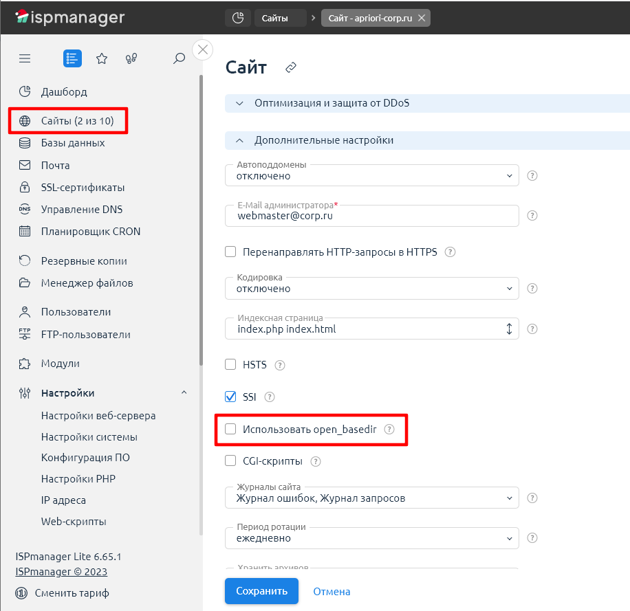 Примечание. Учитывайте какой SSL-сертификат используется на сайте — не все сертификаты распространяются на поддомены. Если текущий сертификат не допускает, то после создания поддоменов необходимо будет изменить сертификат или подключить бесплатный Let's Encrypt.