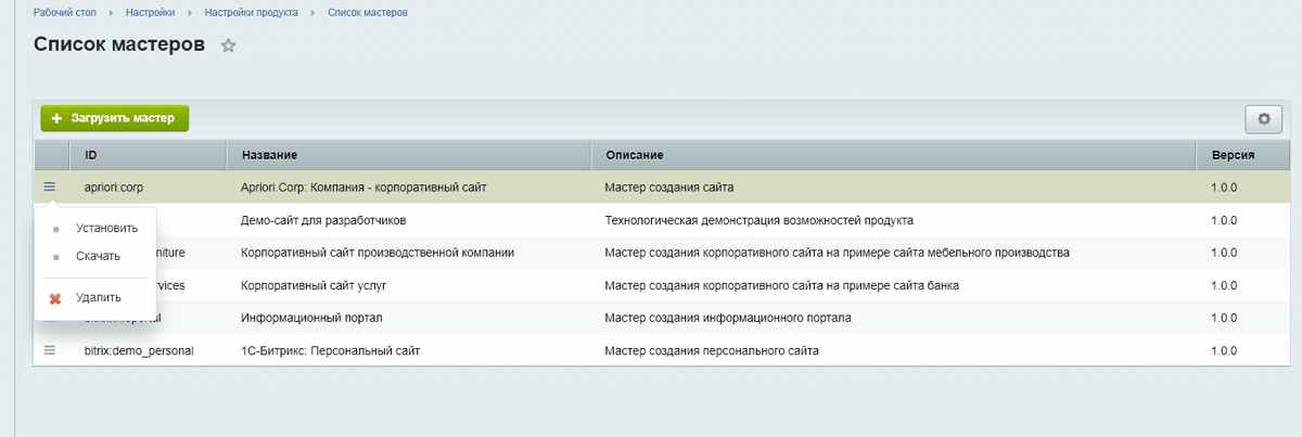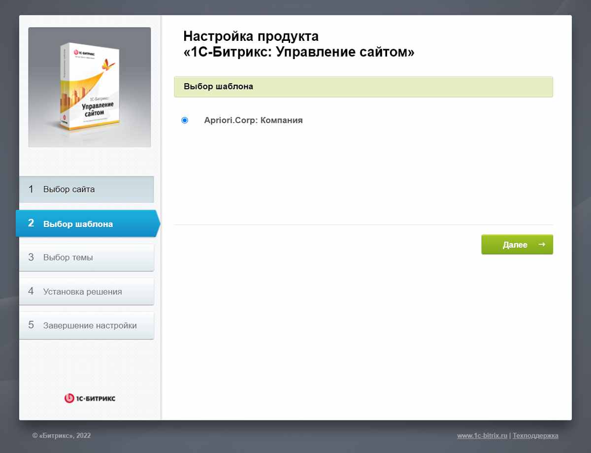 Выберите мастер «Apriori.Corp: Компания - корпоративный сайт».