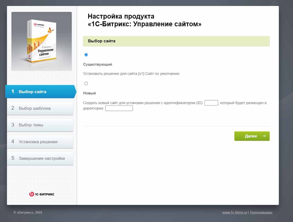 Шаг 1. Установить систему 1С-Битрикс. Если 1С-Битрикс установлен, переходите к шагу 2.