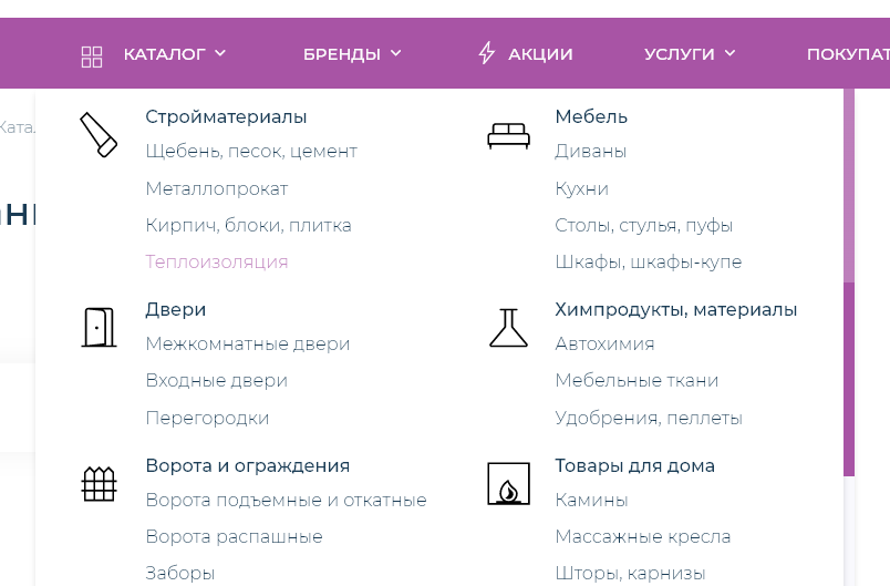 - catalog-section-list: - блок разделы каталога на главной странице, список разделов в каталоге и услугах, связанные разделы в каталоге, услугах, информационных разделах.