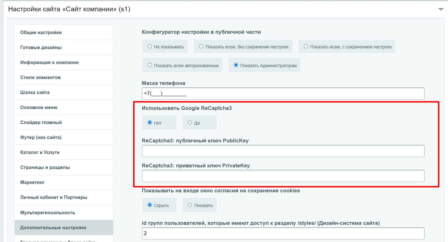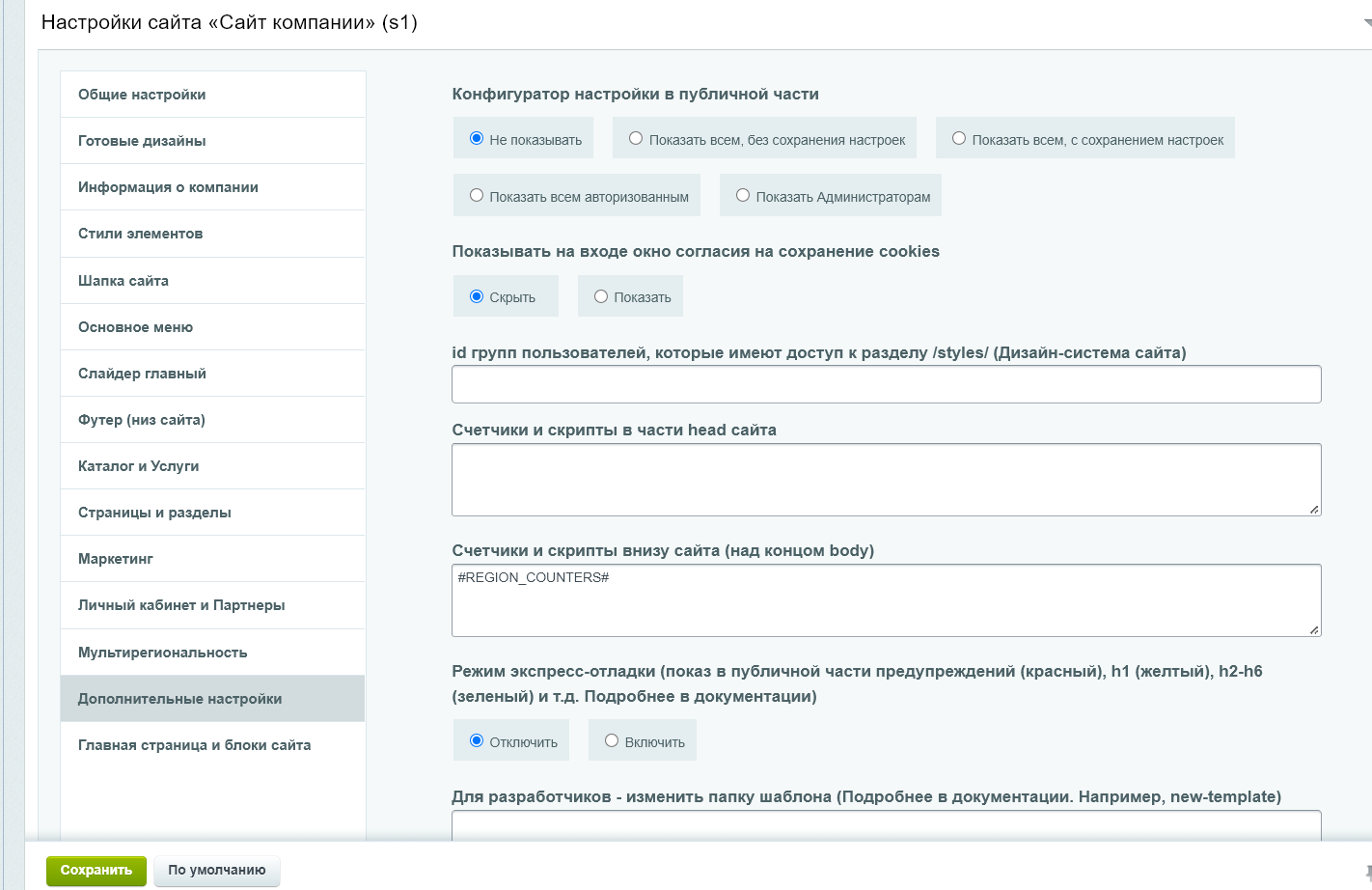 Решение может быть использовано на нескольких сайтах системы. При этом настройки в конфигураторе дизайна настраиваются отдельно для каждого сайта.