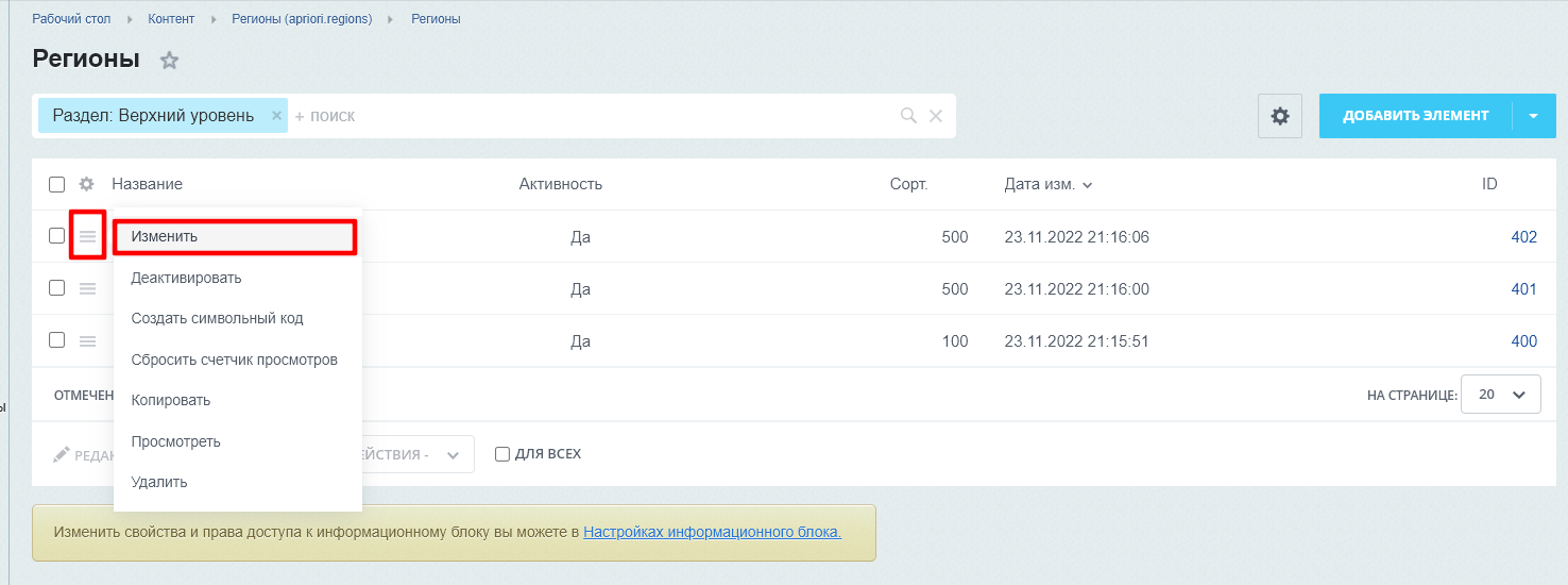 - при необходимости поменяйте поле "Символьный код API" в настройках инфоблока на уникальный с использованием своей логики обработки.