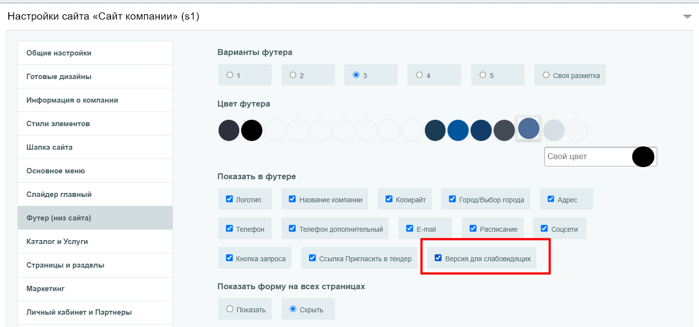 - Выберите в настройках решения цвет и другие варианты дизайна сайта.