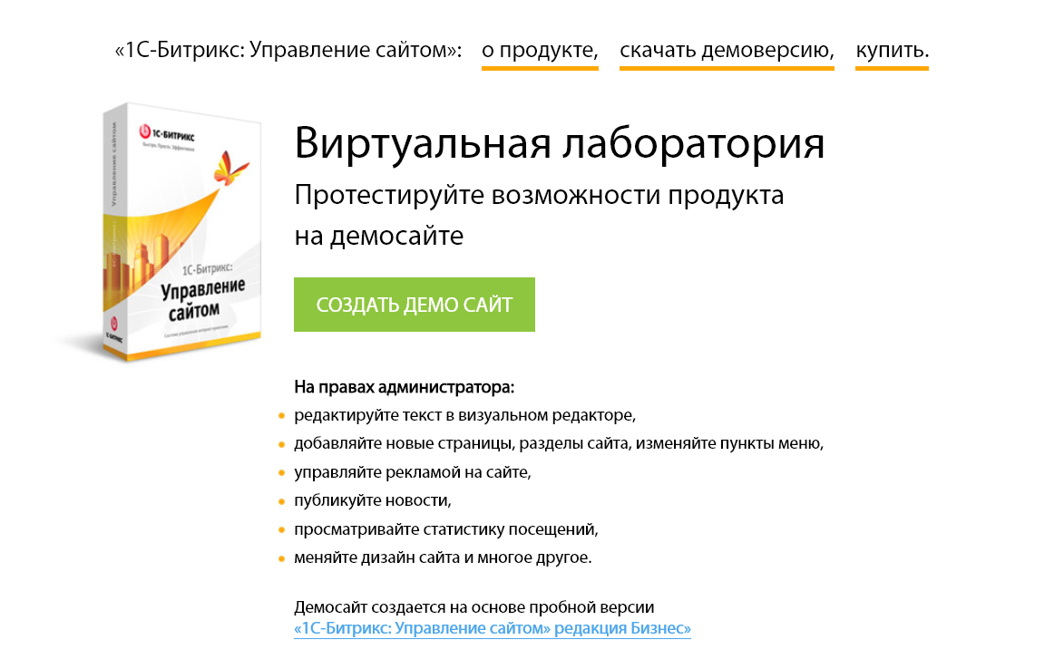 Шаг 1. Создать лабораторию, запустив на странице https://www.1c-bitrix.ru/download/cms.php#tab-section-2