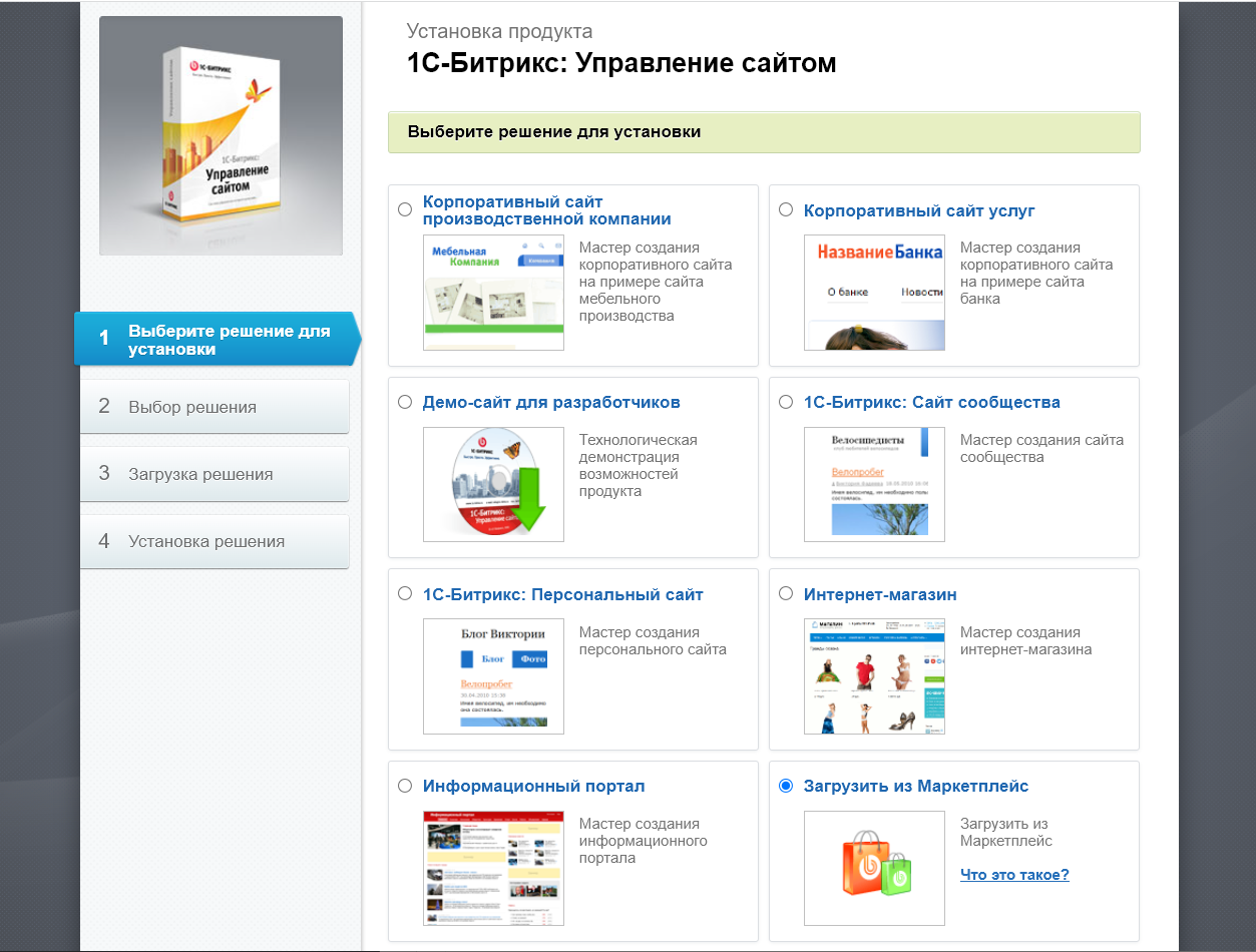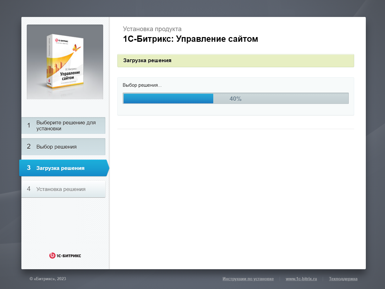 Дождаться установки 1С-Битрикс.